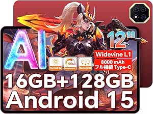- 商品名: 【Android 15 タブレット 12インチ】TECLAST T60 AI アンドロイド15タブレット 2K 画面、2000*1200 IPS、AI機能+90Hzの高リフレッシュレート、8000mAh+フル機能タイプC、8コア CPU 2.0Ghz Widevine L1対応、16GB+128GB+1TB拡張、WiFi 6+BT5.4+GMS、12インチ wi-fiモデル